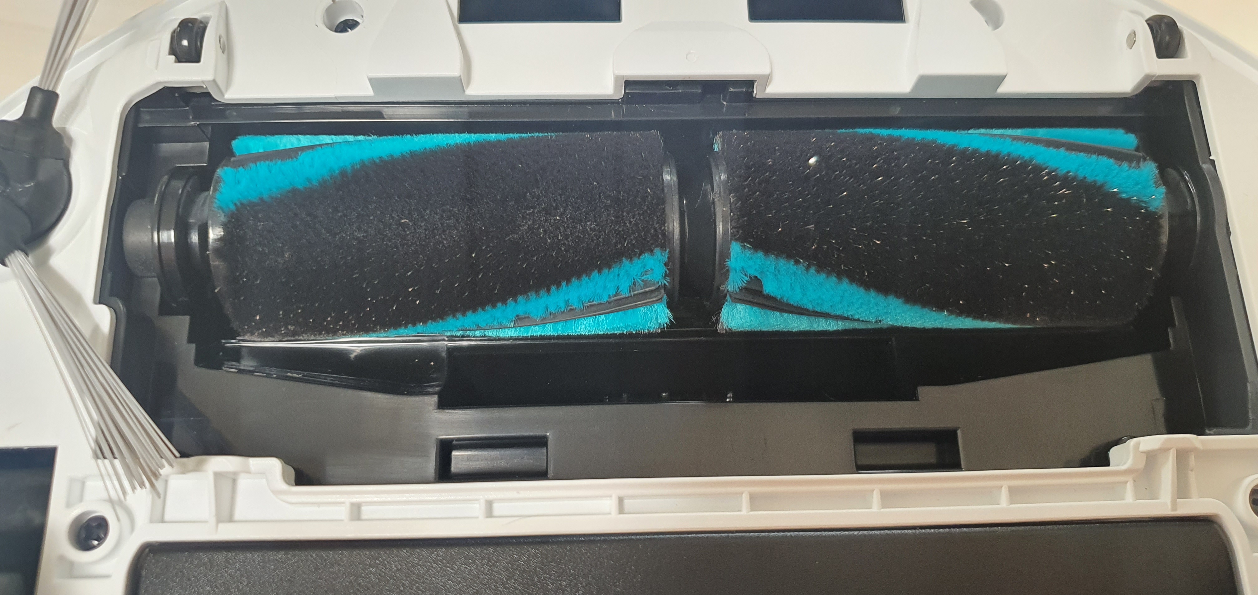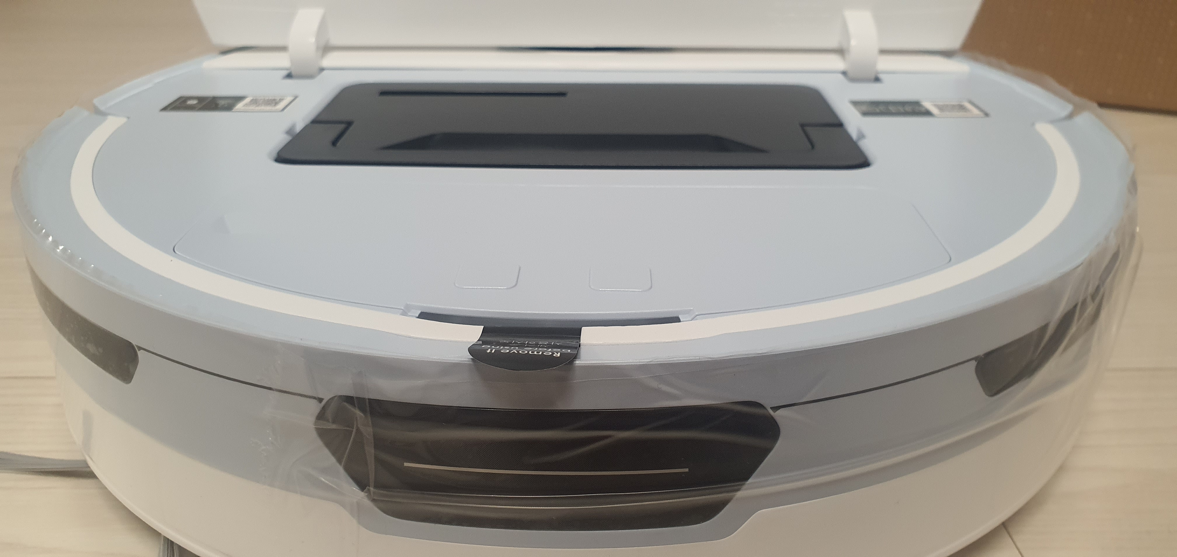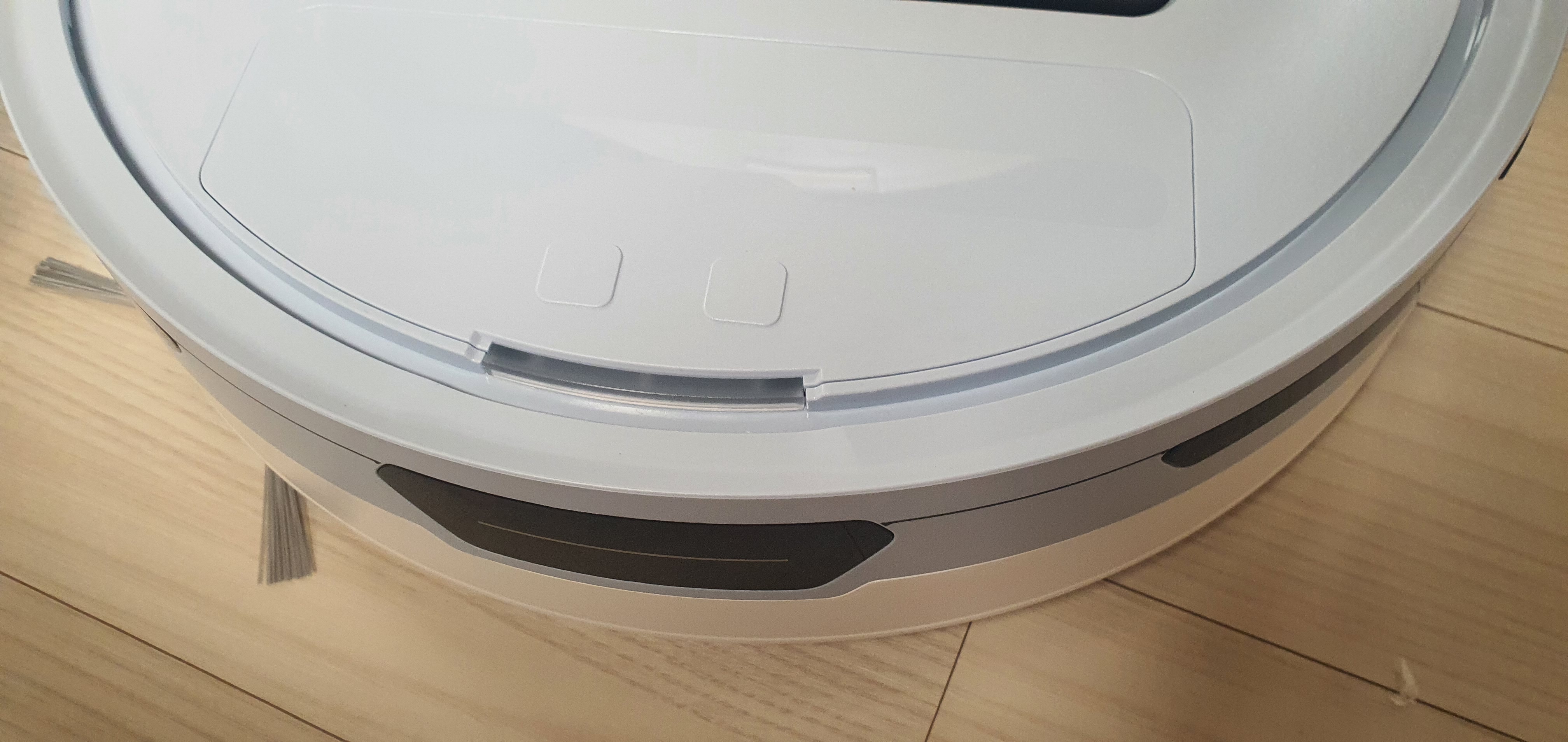 청소 솔이 한쪽밖에 없어서 아쉽다. 이전에 구매했던 제품은 청소 솔이 양쪽에 붙어있었는데... 이와 별개로 흡입은 잘하는 것 같다. 사진은 제대로 못 찍었는데 상단에 4개의 센서가 존재한다.