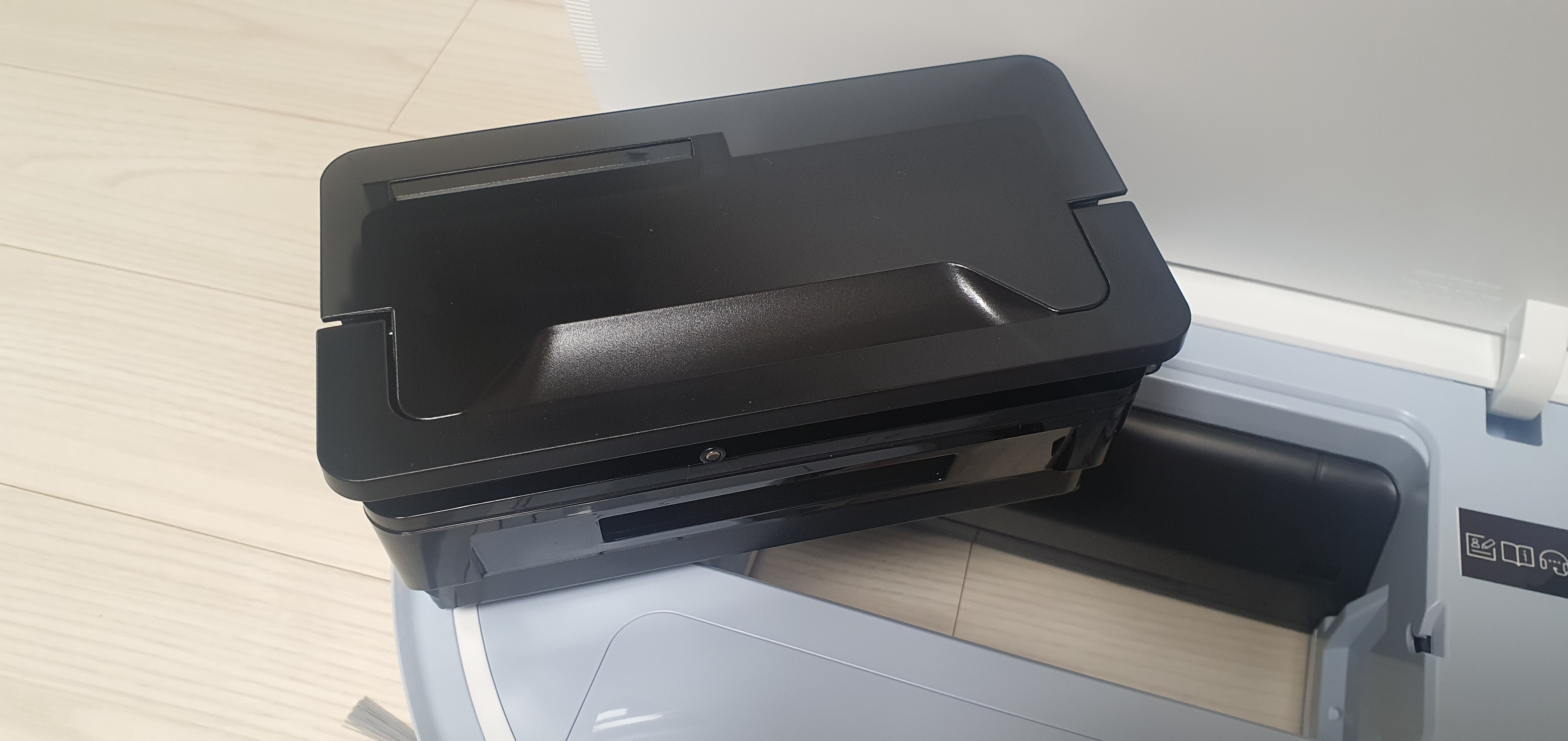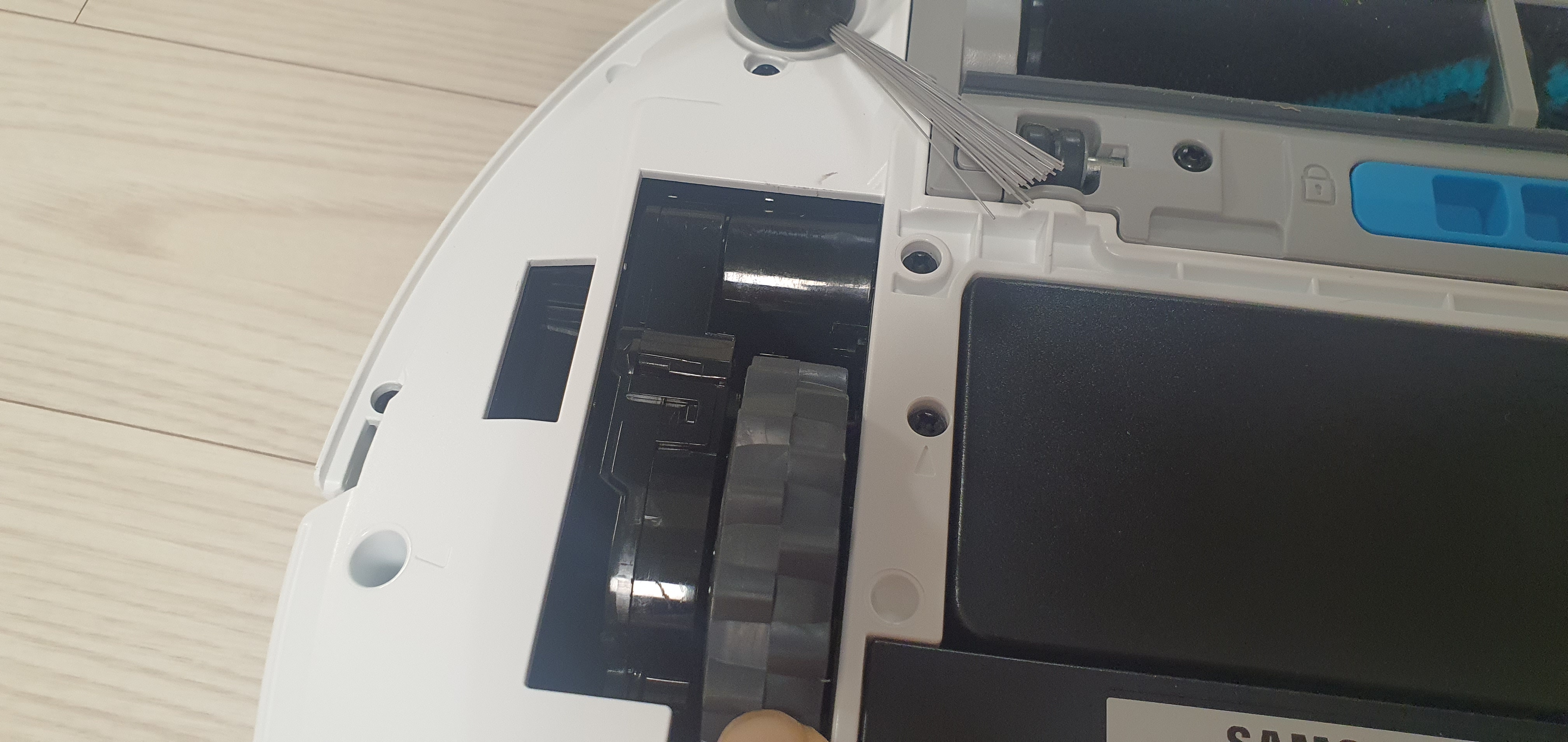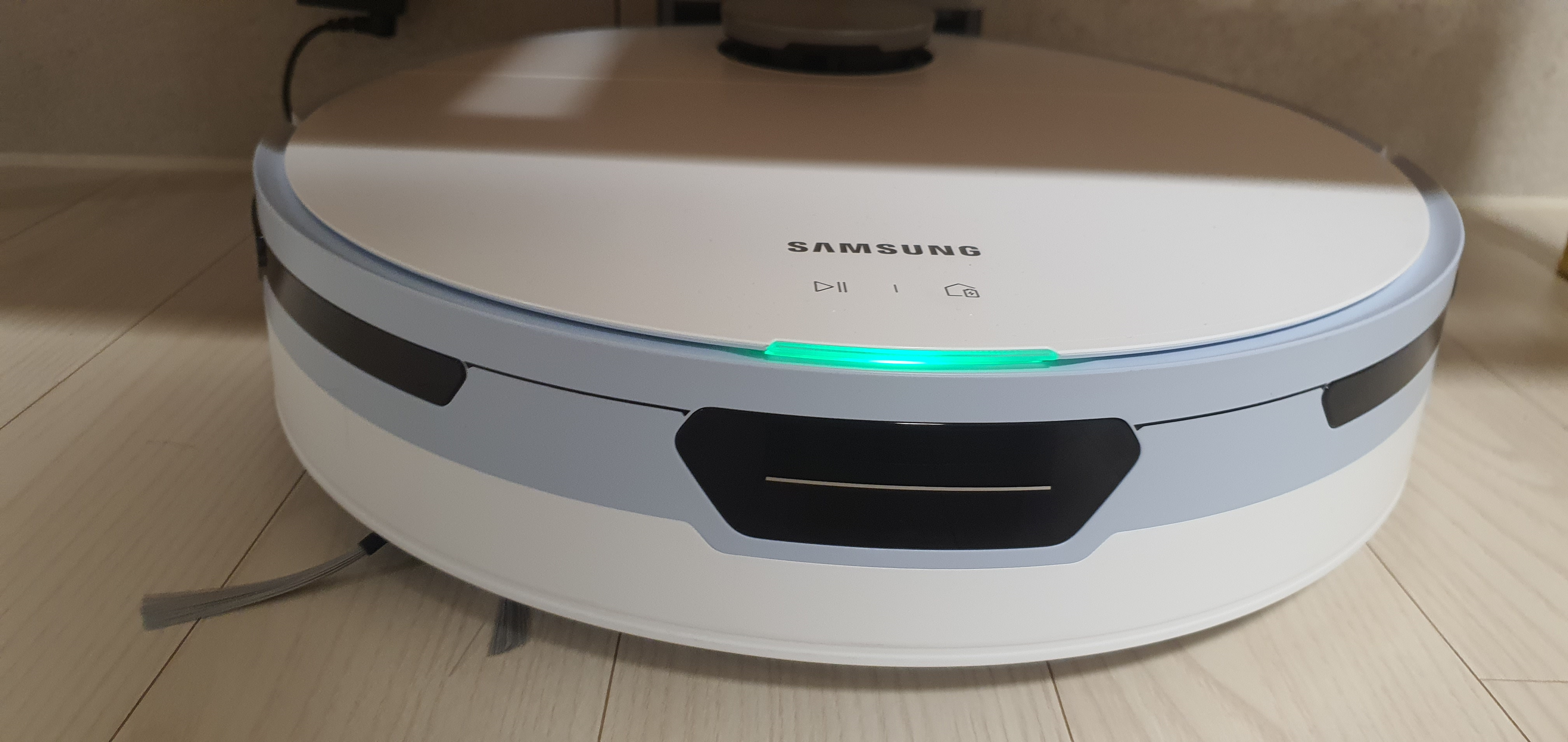 청소 솔이 한쪽밖에 없어서 아쉽다. 이전에 구매했던 제품은 청소 솔이 양쪽에 붙어있었는데... 이와 별개로 흡입은 잘하는 것 같다. 사진은 제대로 못 찍었는데 상단에 4개의 센서가 존재한다.