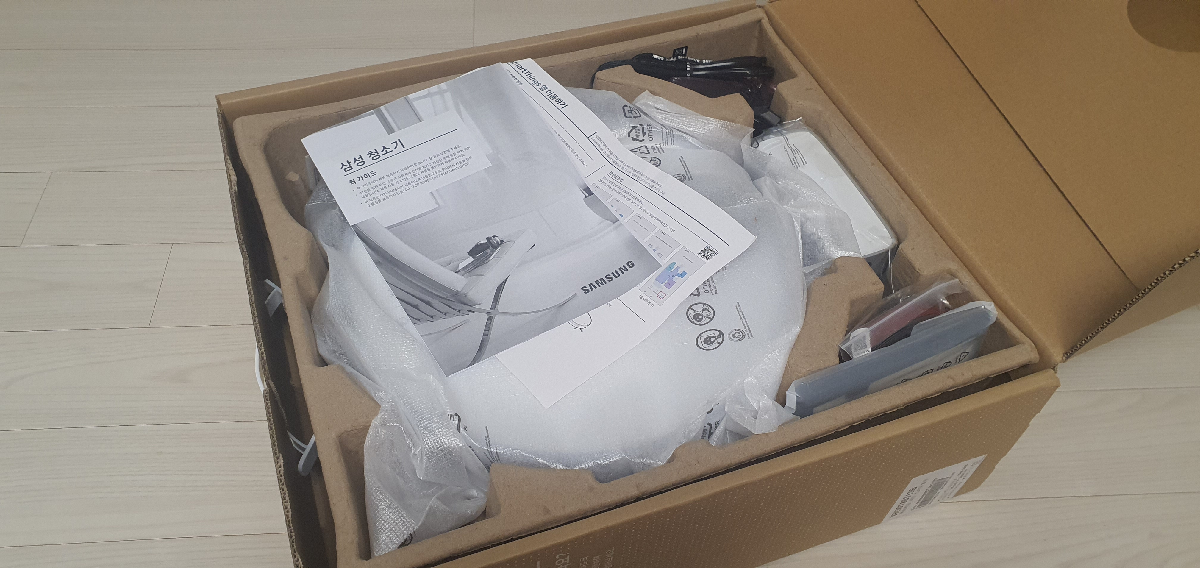 기본형 모델인데 박스가 엄청나게 크다. 이전에 샀던 로봇 청소기도 이 정도 크기였던 거 같은데 어쨌든 커서 놀람.