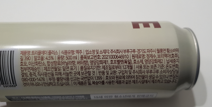 제품설명을 보면 알코올도수는 4.5%이고 버터향과 바닐라 향이다.
