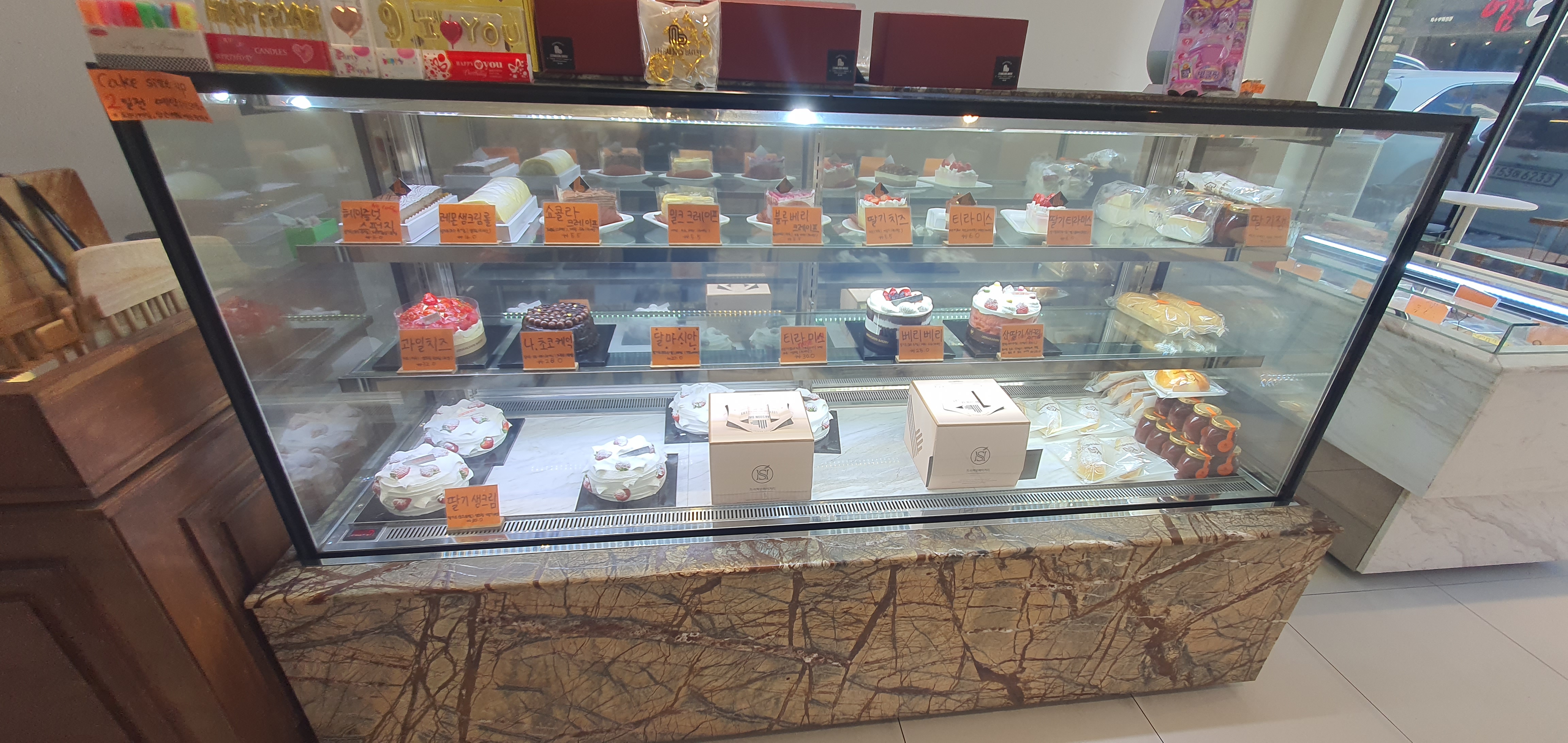 쿠키와 케이크의 종류도 엄청 다양하다. 케이크를 포장해가는 사람이 은근히 많음...