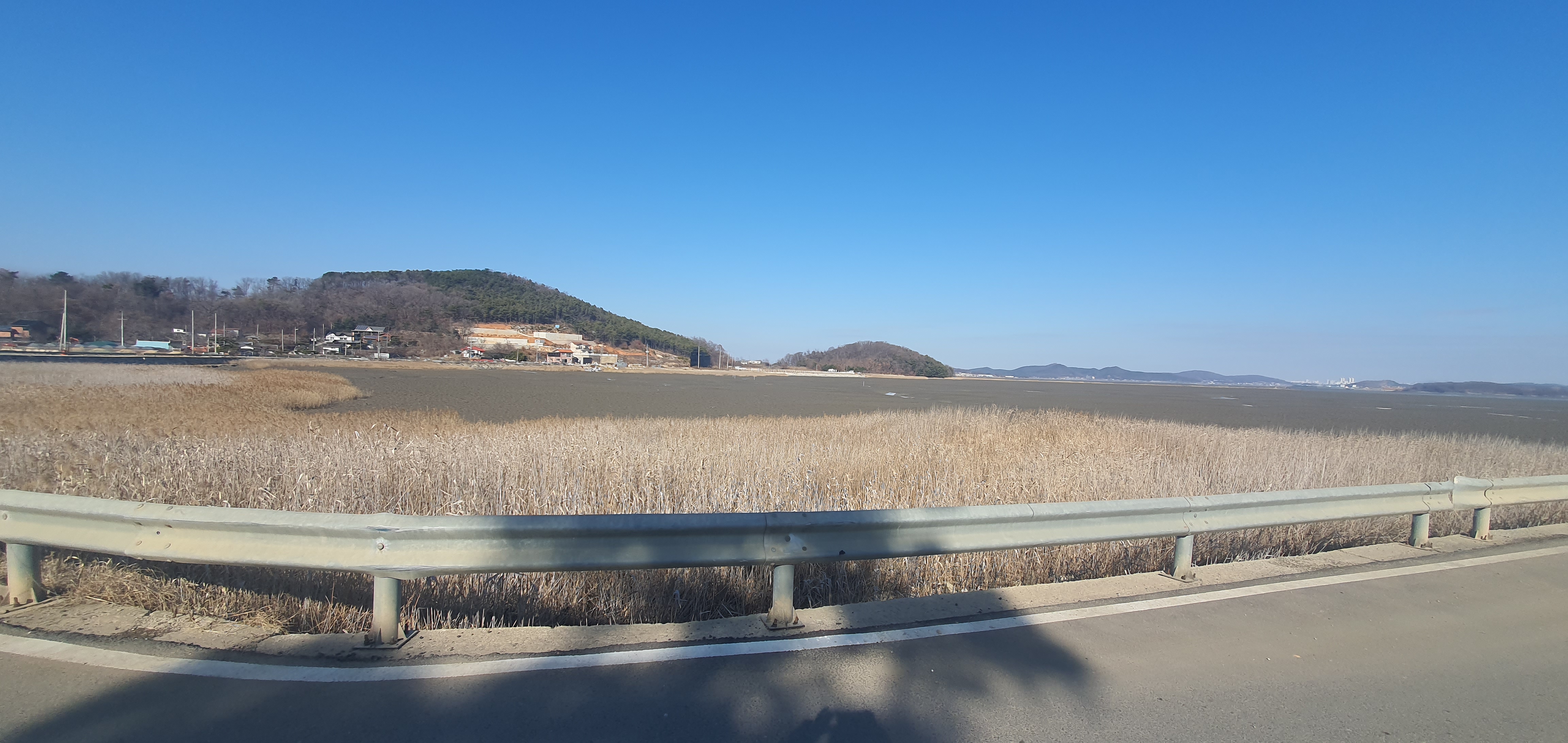 동검도 다리에서 카페로 오는 길이 차선이 1개밖에 없지만 차가 많지는 않아서 오는데 그렇게 불편하지는