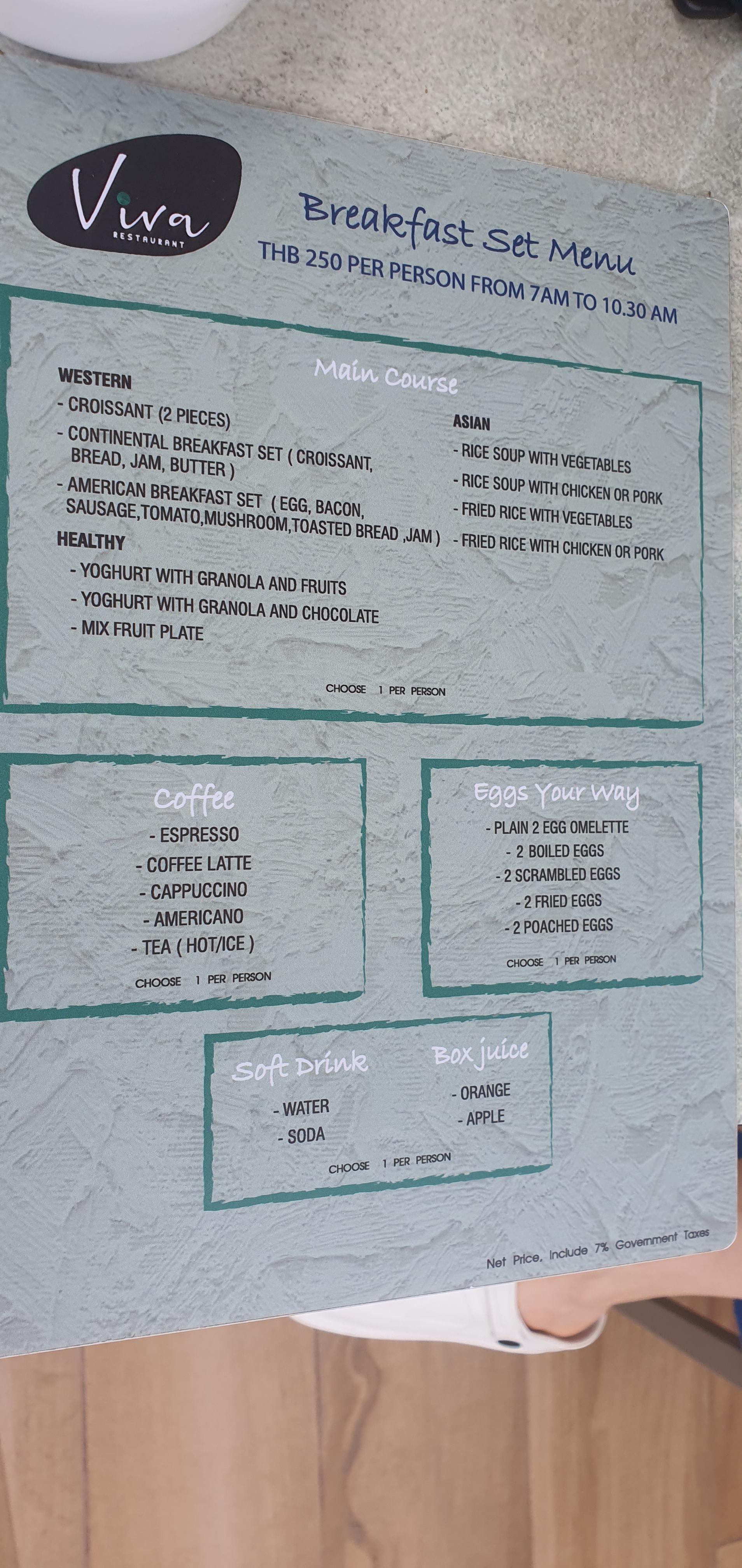 아침 조식의 가격은 250밧으로 우리나라 돈으로 1만원 정도 한다. 태국 물가를 생각한다면 저렴한 편은 아니다. 밥을 너무 먹고 싶었기 때문에 Rice soup with chicken(치킨 수프), Fried rice with chicken(치킨 볶음밥) 이렇게 2 종류를 주문을 했다.