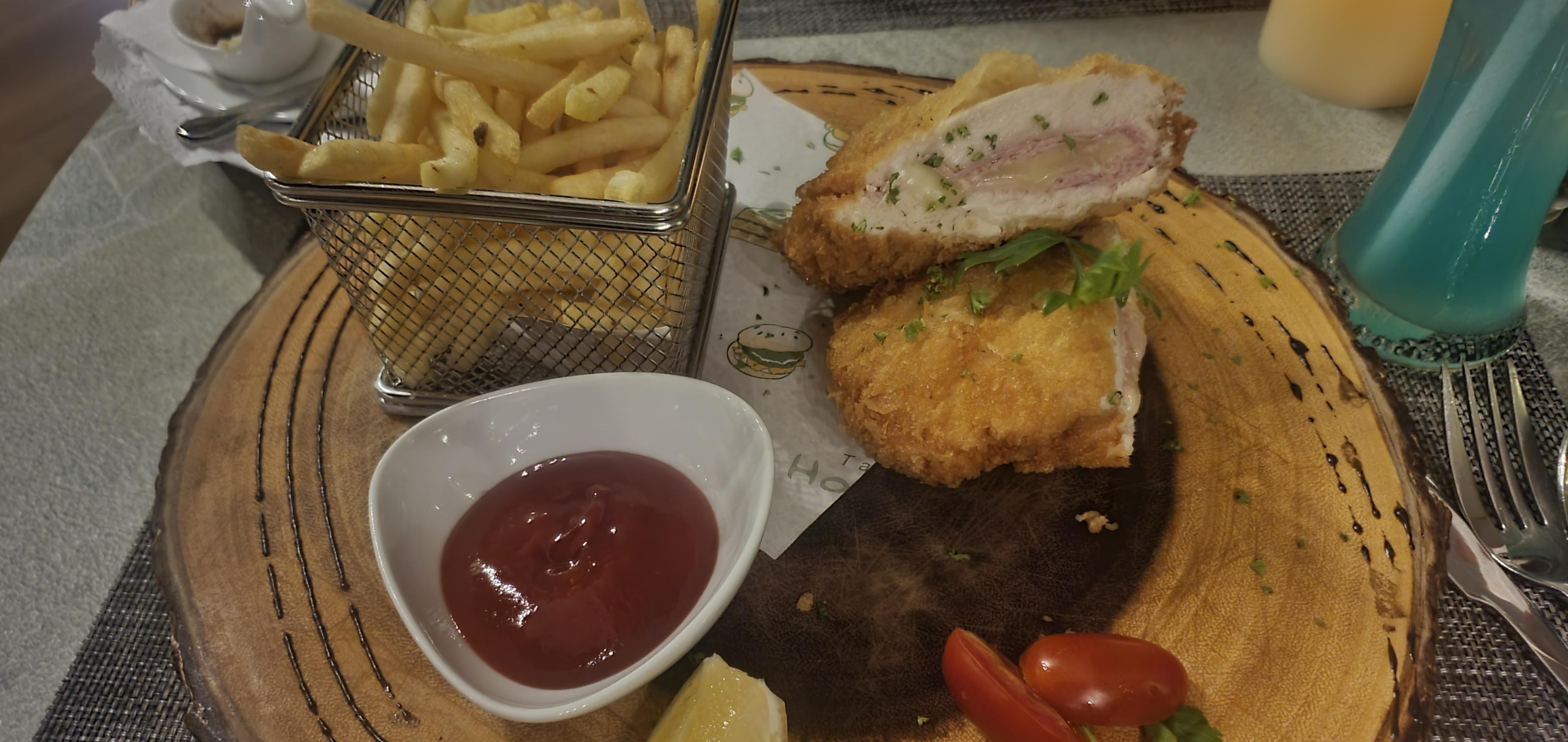 요리는 오징어, 새우튀김, 닭가슴살 2종류를 주문했다. 밥이 없어서 느끼하기도 하고 양이 많아서 둘이 먹기에는 힘들었다. 다. 튀김을 어찌나 잘 튀기던지 빠삭빠삭하고 그릇에 데코가 정말 멋졌다. 통나무를 자른듯하게 생긴 그릇인데, 고급 요리를 먹는 듯한 기분이 들었다. 식전빵도 너무 맛있게 먹었고 이 요리들을 먹으니 하루를 알차게 보냈다는 생각이 절로 들었다. 음식 비주얼도 정말 미친것 같다.