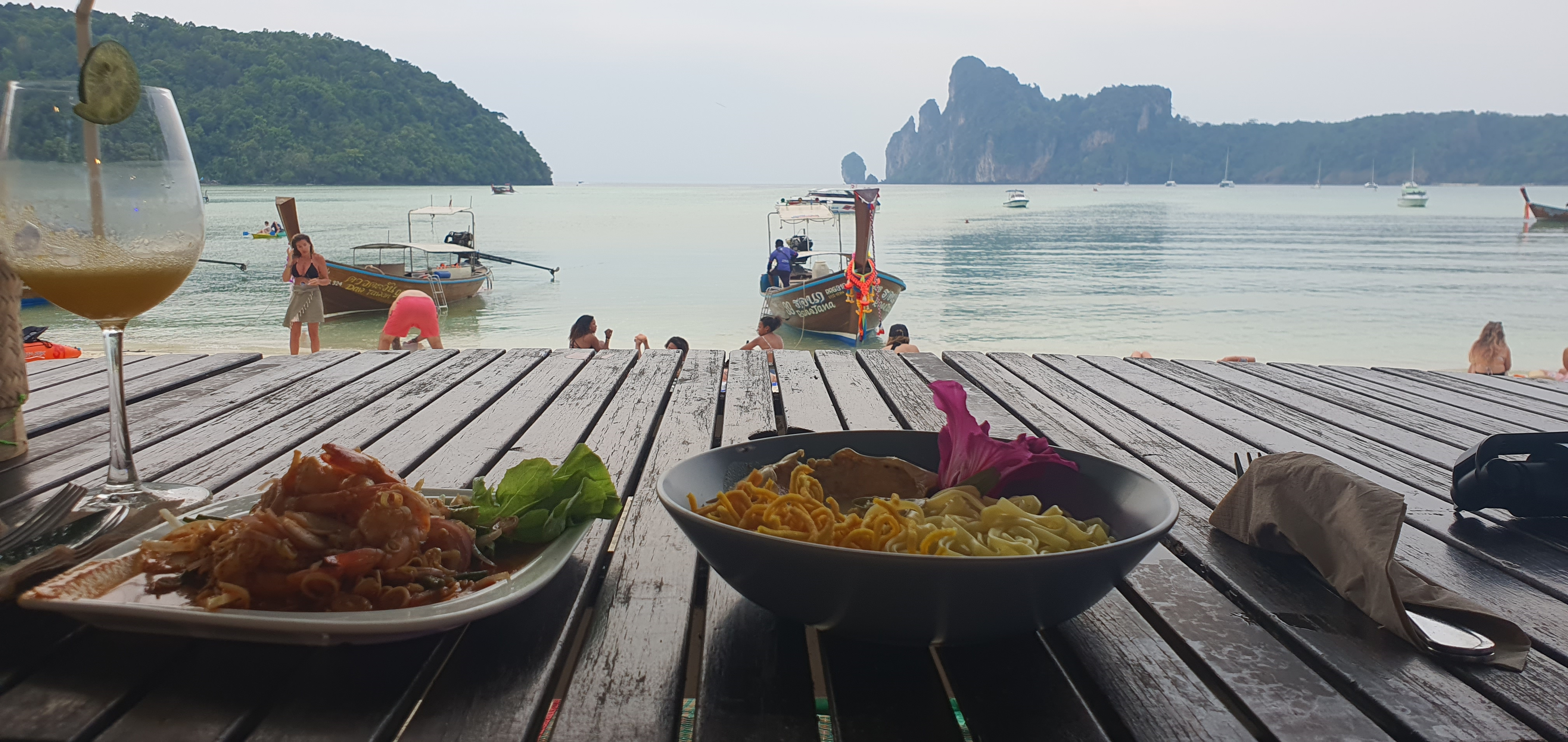 톤사이 해변 앞에서 음식점들이 있어서 해변 앞에 테이블까지 가져다준다. 내가 주문한 음식들의 가격은 대부분 평균적으로 300밧이 넘는 것이 없던 것으로 기억한다. 샌드위치 3 종류, 파스타 2종류, 칵테일 2잔 해서 3만원 중반대가 나왔다. 경치와 맛도 만족도가 있는 곳이었음. 칵테일은 2잔에 7천원 정도 하는데 양이 엄청나게 많다. 1일 차만 후기로 썼는데, 다음에 기회가 되면 2일 차 후기도 적어보도록 하겠다.