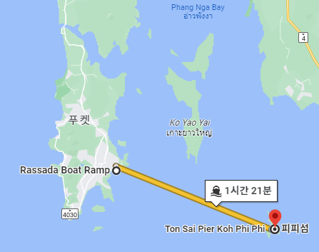 직선거리는 대략 이정도 하고 구글지도로는 1시간 20분 정도라고 나와있는데, 어느 보트를 타느냐에 따라서 시간차이가 많이 난다. 스피드보트를 타는 경우 1시간 정도가 걸리고 페리를 타는 경우 2시간 정도가 소요가 된다. 나는 갈 때는 스피드 보트 올 때는 페리를 타고 왔는데, 스피드보트가 몸은 편하고 더 쾌적했던 것 같다. 페리는 여유롭게 바다를 즐기기에 좋다.