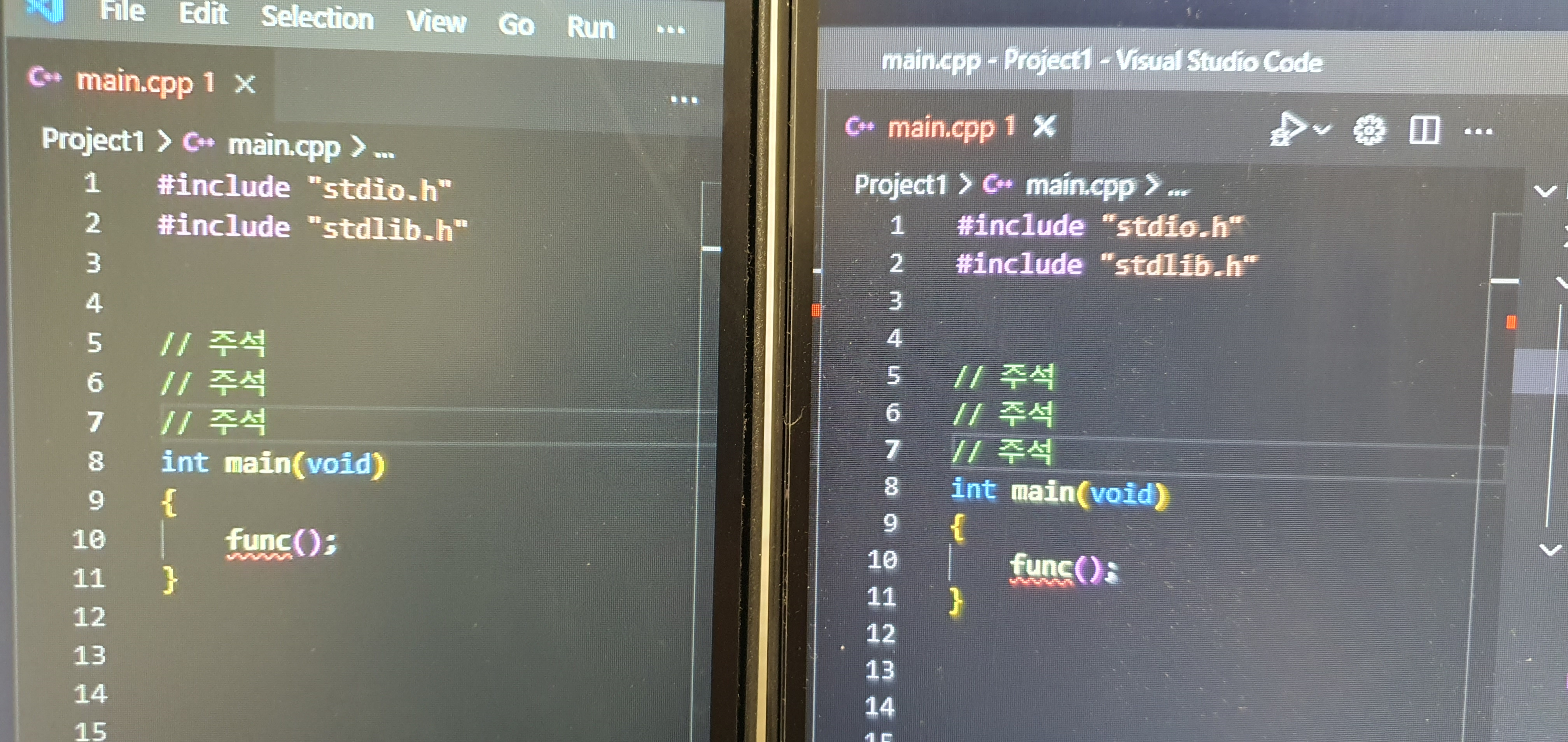 두 모니터는 다른 제품이긴 하지만 HDMI 기준으로 색상은 거의 차이 없다. 좌측은 USB to HDMI, 우측은 HDMI이고 사진상으로는 색감의 크게 차이가 없어 보이기도 하고 혹은 누렇게 보이기도 하는데, 실제로는 USB로 구동되는 쪽이 대체적으로 어둡게 표현이 되고 있다. 글자나 문서를 볼 때 색감이 차이가 느껴지지만 이상하게 영상을 볼 때는 차이가 느껴지지 않는다.