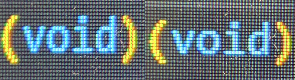 글자는 어두워서 그런지 체감상 해상도가 낮다고 생각했는데, 어떤 게 HDMI인지 확인이 안 될 정도로 거의 유사하게 느껴지고 안티엘리어싱도 잘 되고 있다.