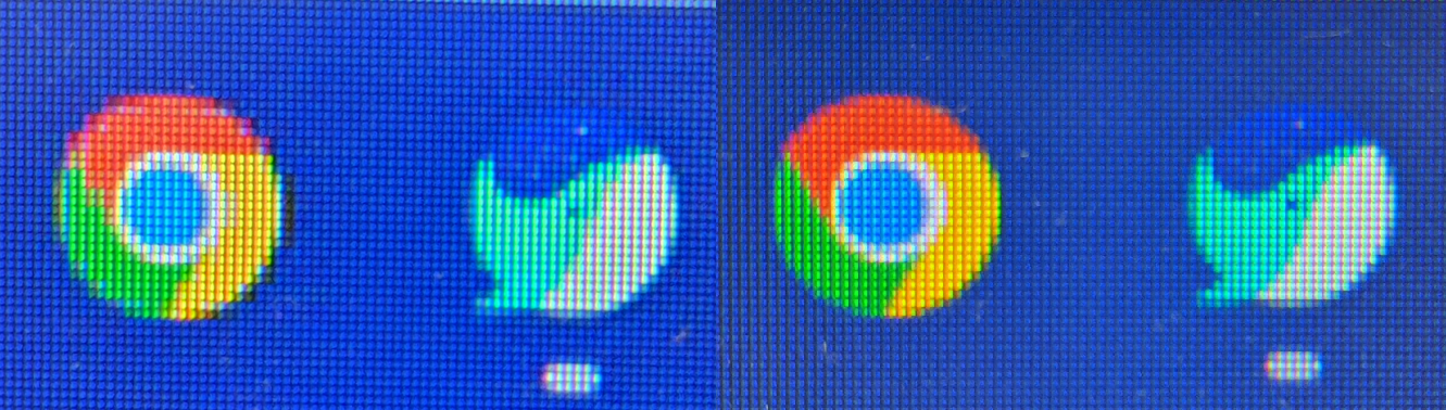 글자에서는 잘 표현이 되었지만 이상하게 아이콘의 경우 안티엘리어싱이 제대로 되지 않고 있다. 좌측이 USB로 연결 우측이 HDMI로 연결을 한 모니터이다. 그냥 모니터를 봤을 때는 미세하게 깨진듯한 것으로 보이는데 이렇게 확대하면 확실하게 차이가 느껴진다. 문자는 제대로 표현이 되는 것을 보면 스펙이 떨어진다기보다는 JUA-365의 드라이버가 표현을 제대로 못하는 것이 아닐까 추측이 된다. 색감과 마찬가지로 해상도도 영상에서는 깨짐 현상 없이 제대로 표현이 되고 있어서 영상을 보는 데는 전혀 문제가 없었다.