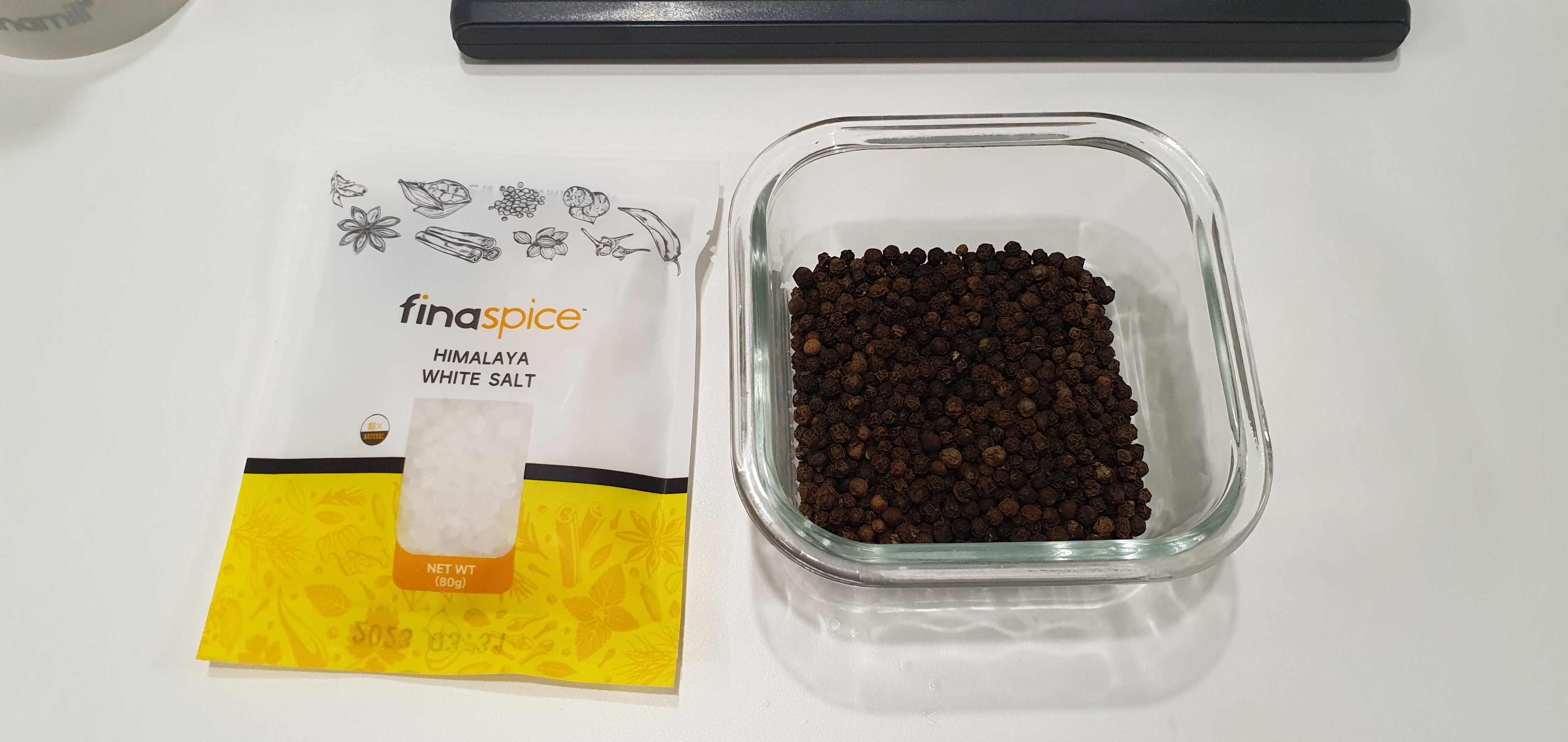손으로 돌리는 그라인더 보다 확실히 편하다. 수동 그라인더도 마찬가지 이겠지만 아래 바닥에 후추가 걸려있는 것으로 보면 보관이 괜찮을지 의구심이 든다. 그건 그렇다 치고 안에 구성품으로 들어있는 통후추는 상당히 풍미도 괜찮고 맛있었다. 기성품으로 파는 후추랑은 비교가 안 되는 맛이고 매운맛이 상당히 강했다.