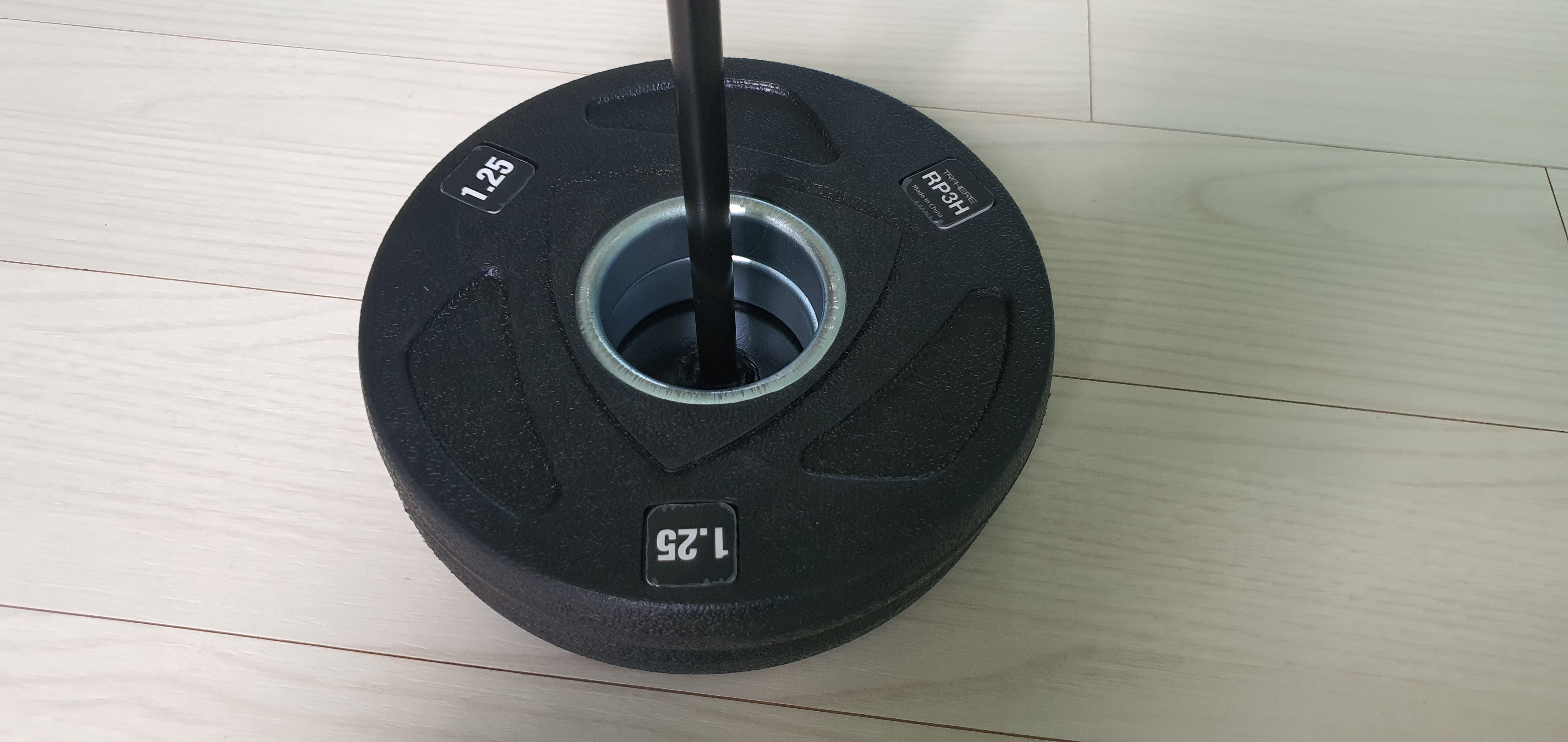 참고로 내가 주문한 원판은 트라히어 RP3H 고무 홈짐 헬스 중량 원판인데 1.25Kg 2개에 만원대 초반으로 가성비가 좋은 원판 같다. 이것 보다 더 저렴한 원판도 있겠지만 왠지 내구성이 좋아 보이기도 하고 해서 이걸로 주문함. 원판의 홀이 딱 고정이 되지 않기 때문에 약간씩 쏠릴 수도 있어서 너무 큰 무게보다는 작은 무게로 여러 개를 넣는 게 좋을 것 같다.