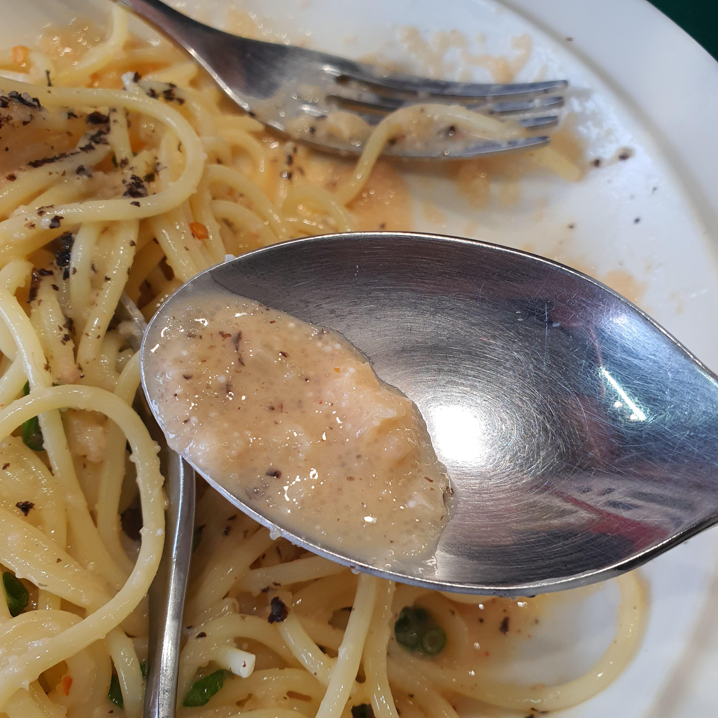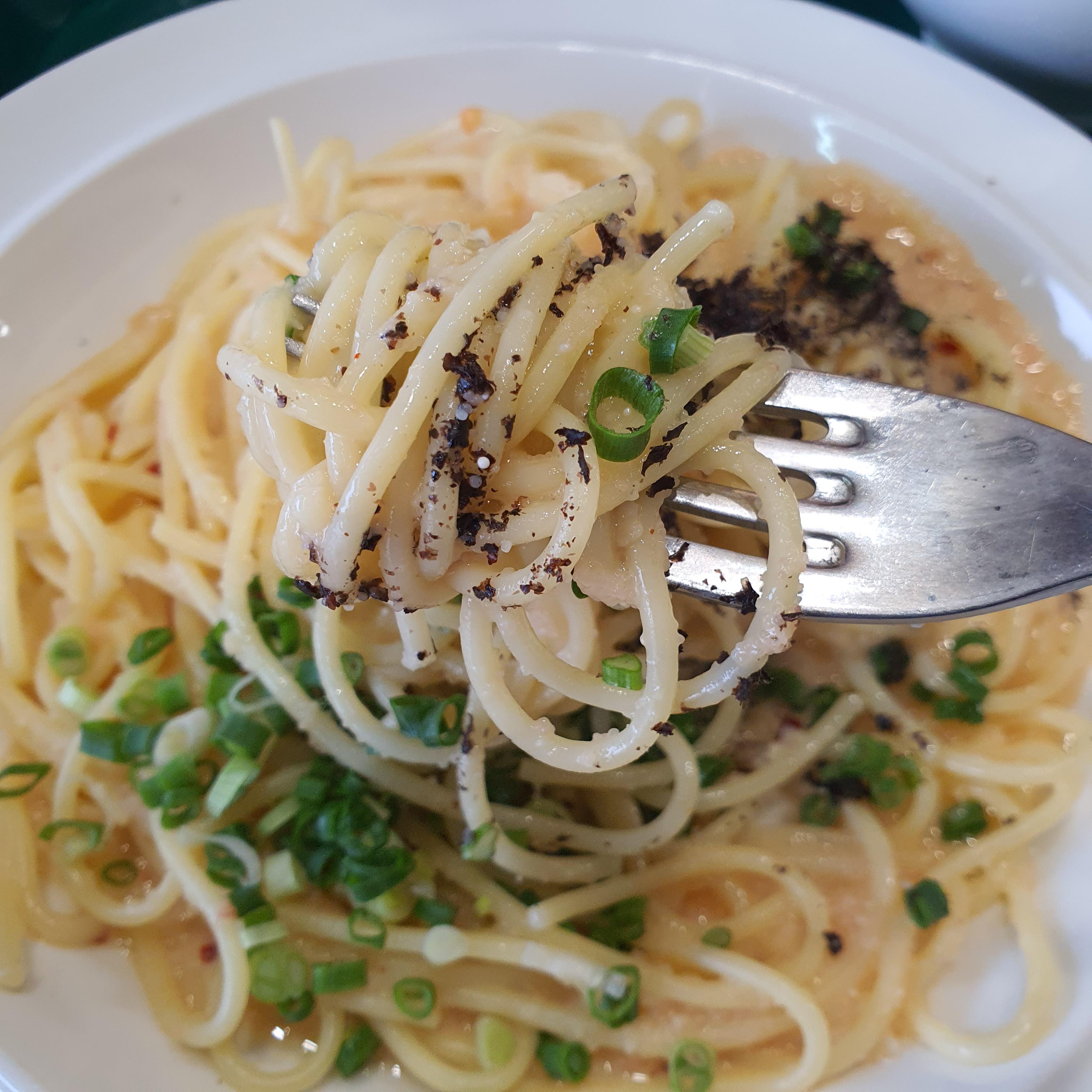 오일파스타인 알리오올리오에서 맛볼 수 없는 명란의 짭조름함과 감칠맛이 엄청 진하게 느껴진다. 들기름과 명란의 조화가 정말 환상적이라고 생각했음... 저번에도 엄청 맛있게 먹었는데 이번에도 맛있게 먹었다. 그리고 중간중간에 아삭아삭 씹히는 쪽파의 식감과 향이 조화가 좋았음.