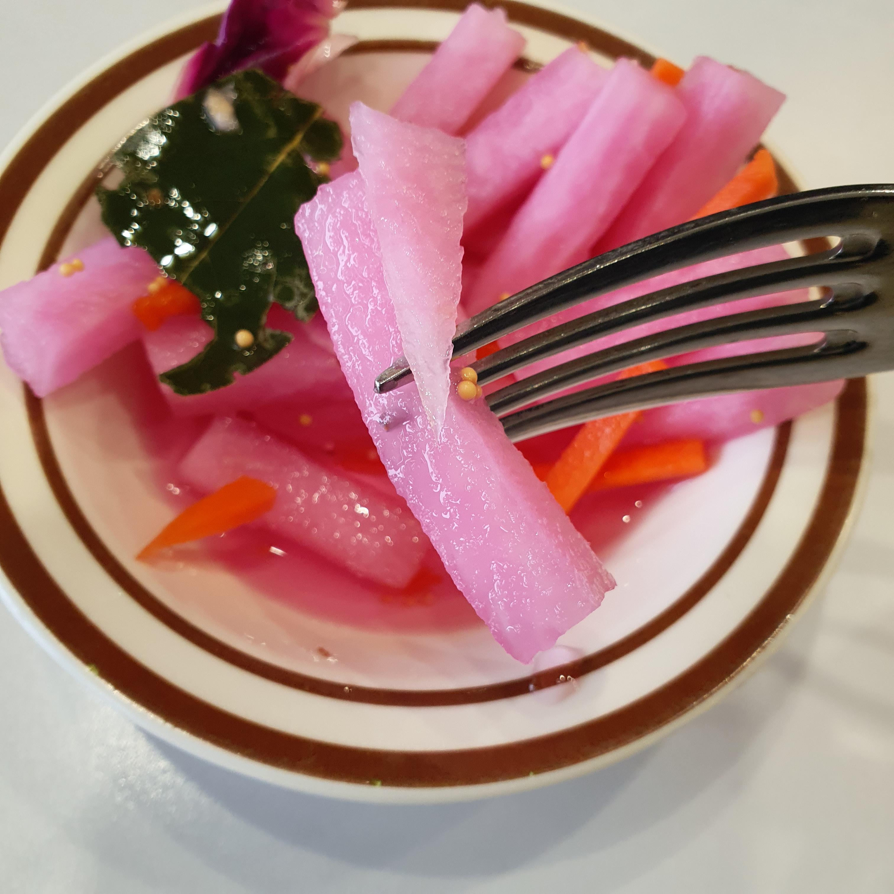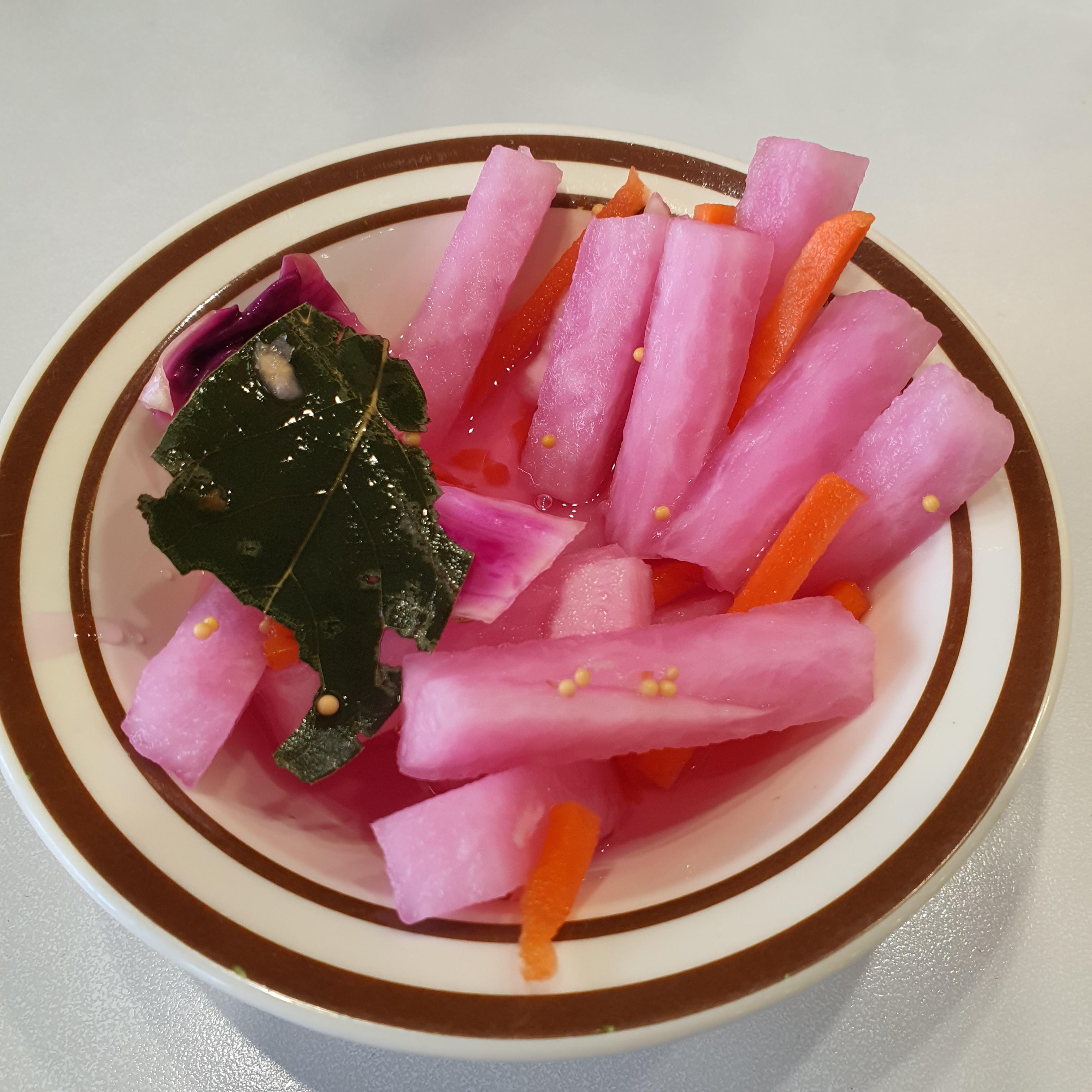 느끼할 때마다 한 조각씩 먹어주면 콜라 없이도 식사 쌉 가능. 무피클에 안에 들어간 내용물들을 보면 엄청나게 영혼 있게 만듦. 무가 정말 맛있었다.