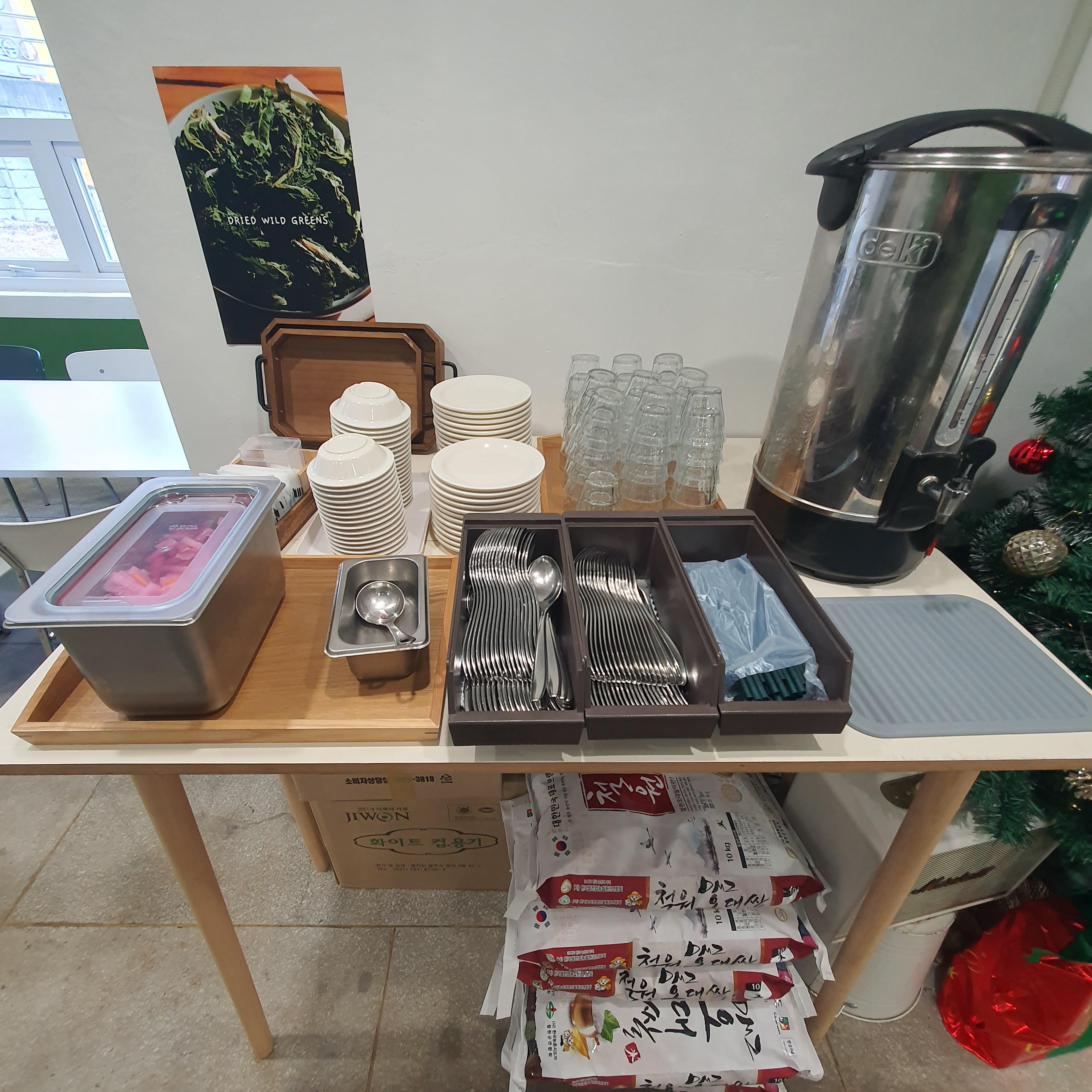 기본적인 식기와 무피클이 있는데 무피클이 느끼함도 잘 잡아주고 새콤달콤한게 정말 취향저격함.
