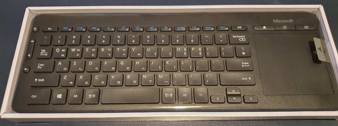 제가 이 키보드를 구매한 이유는 트랙패드가 있기 때문입니다. 요즘 거의다 스마트 TV를 사용하고 있을 텐데요, 리모컨으로는 뭔가 불편하고 빠르게 검색을 하고 싶은데 마우스랑 키보드를 사려니 뭔가 조잡한 기분? 그래서 트랙패드가 있는 키보드를 찾다가 오래된 마소의 올인원 키보드를 발견을 하였네요.