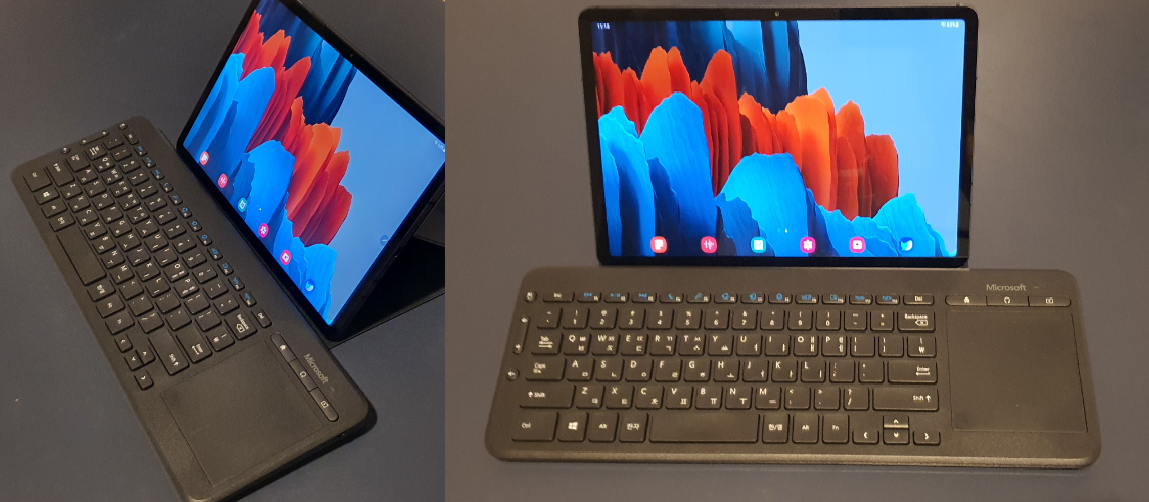 태블릿과 같이 두었을 때는 이런 느낌입니다. 디자인은 나쁘지 않죠?