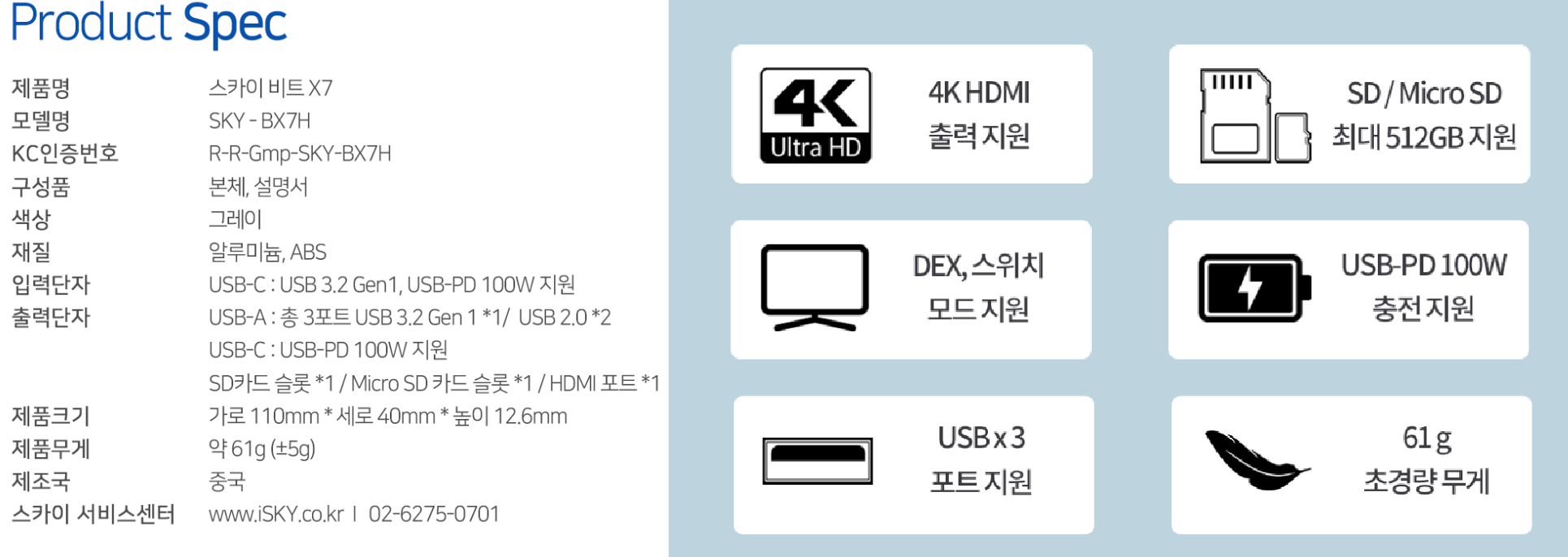 스카이 비트 X7 7in1 C타입 허브 외관